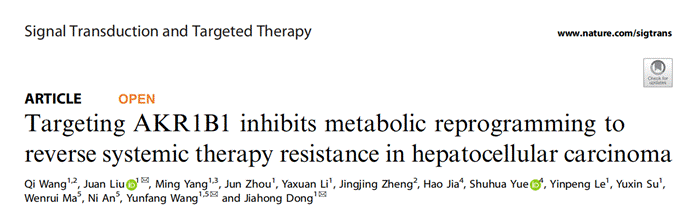 2025年8月,清华大学北京清华长庚医院等单位的研究人员在《Signal Transduction and Targeted Therapy》(IF:52.7)上发表了题为“Targeting AKR1B1 inhibits metabolic reprogramming to reverse systemic therapy resistance in hepatocellular carcinoma”的研究论文,揭示了醛酮还原酶(AKR1B1)通过调节代谢重编程,关键参与介导肝细胞癌(HCC)的耐药性。为理解HCC耐药机制提供了新的视角,也为开发旨在克服HCC耐药性的新型预测生物标志物和治疗方法奠定了理论基础。