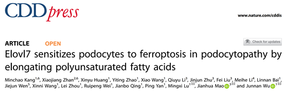 Cell Death & Disease:吴俊男/毛建华/陆明晰揭示脂肪酸延长酶 Elovl7 通过诱导足细胞铁死亡参与足细胞病的新机制