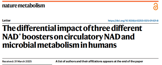 三种不同NAD⁺补剂对人体循环NAD水平及微生物代谢的差异影响